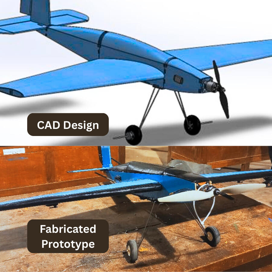 The culmination of this effort was receiving the Best Report Award in Propellair 2024 and successfully mentoring the team that won the Propellair 2025 competition. The aircraft design leveraged a rigorous multi-stage process, beginning with conceptual design using Multi-Criteria Decision Making (MCDM) techniques for configuration selection (tapered mid-wing monoplane). The design was validated through comprehensive Computer-Aided Engineering (CAE), including Computational Fluid Dynamics (CFD) analysis on the NACA 2412 airfoil using Ansys Fluent, and Finite Element Analysis (FEA) to optimize the internal rib structure and landing gear. Fabrication was done via balsa sheet and laser cutting with monokote sheeting. Success continues into the present, as I currently lead the design and documentation efforts for the upcoming Propellair 2026 entry.